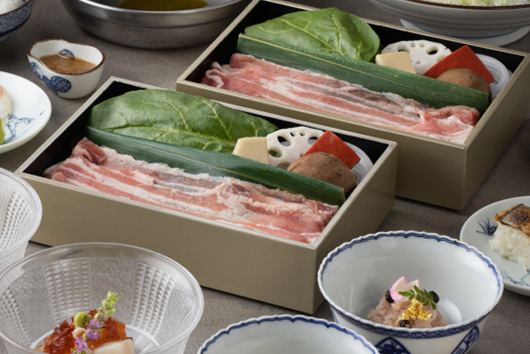 7,500円個別鍋でいただく、厳選豚肉の出汁しゃぶに、旬の食材を使ったお料理の数々をご一緒にコースでご用意しております。お祝い仕立てのお料理で忘れられない日をお手伝いいたします。
